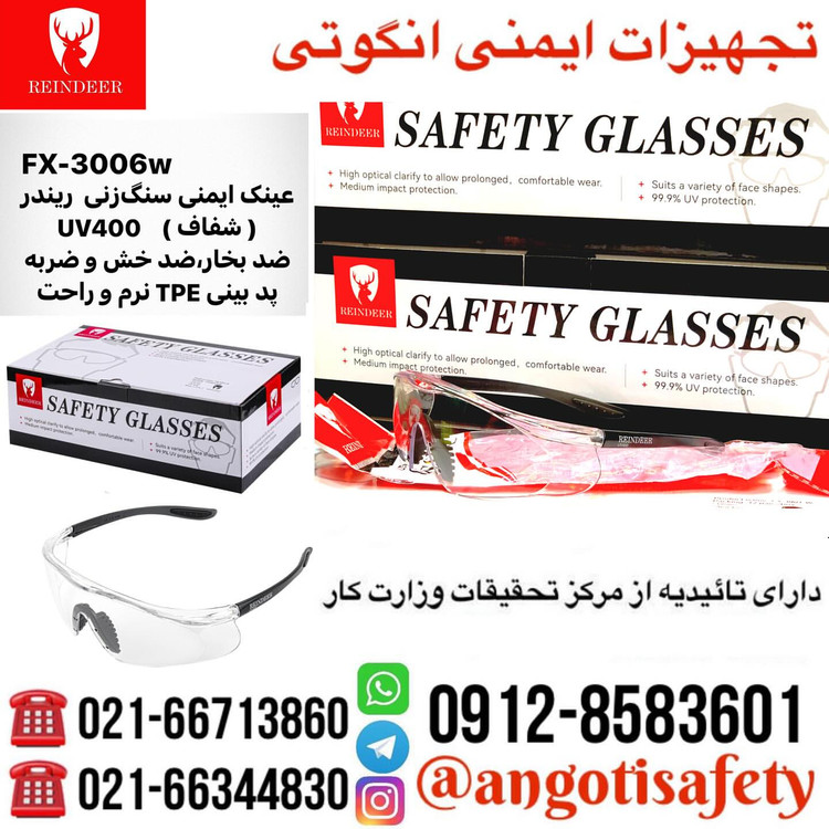 عینک ایمنی سنگ زنی ریندر شفافREINDEER FX3006