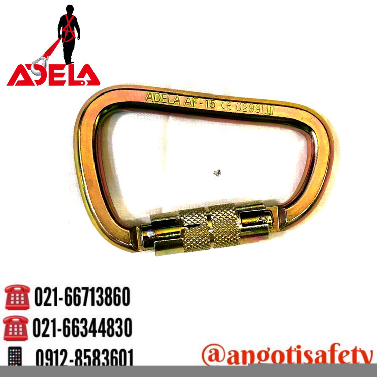 کارابین اتومات فولادی آدلا ADELA مدل AF-15 با شکل بیضی و با استحکام بالا مناسب برای طیف وسیعی از کاربردها است.طراحی قفل(1 پیچ و 2 باز) با عملکرد اتومات از بازشدن ناخواسته دهانه جلوگیری می کند و ایمنی کاربر را بالاتر می برد. همچنین طراحی بیضی شکل و متقارن این کارابین قرارگیری تجهیزات (قرقره ها ، یومار ، قفل شونده ،بالارونده ،سایر ابزار و غیره) را در بهترین حالت امکان پذیر کرده است.