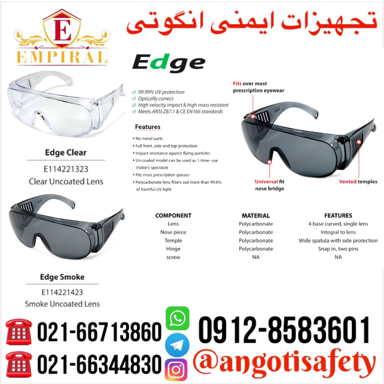 عینک ایمنی بغل کرکرهای تایوانی EMPIRAL ( دودی و شفاف )